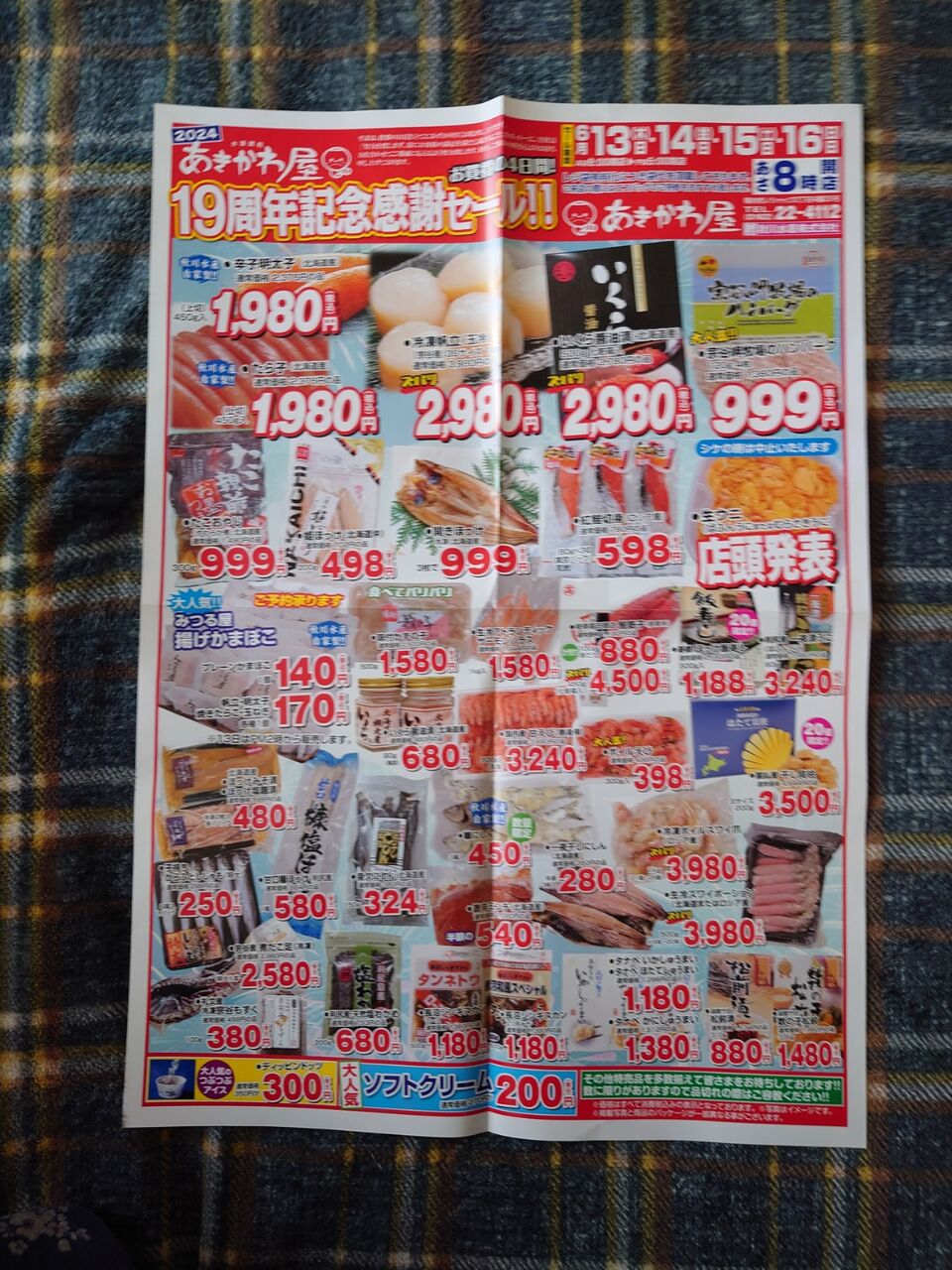 13日〜16日まで地元の水産会社秋川水産でやっているお店「あきかわ屋」で19周年の記念感謝セールをやっていました。