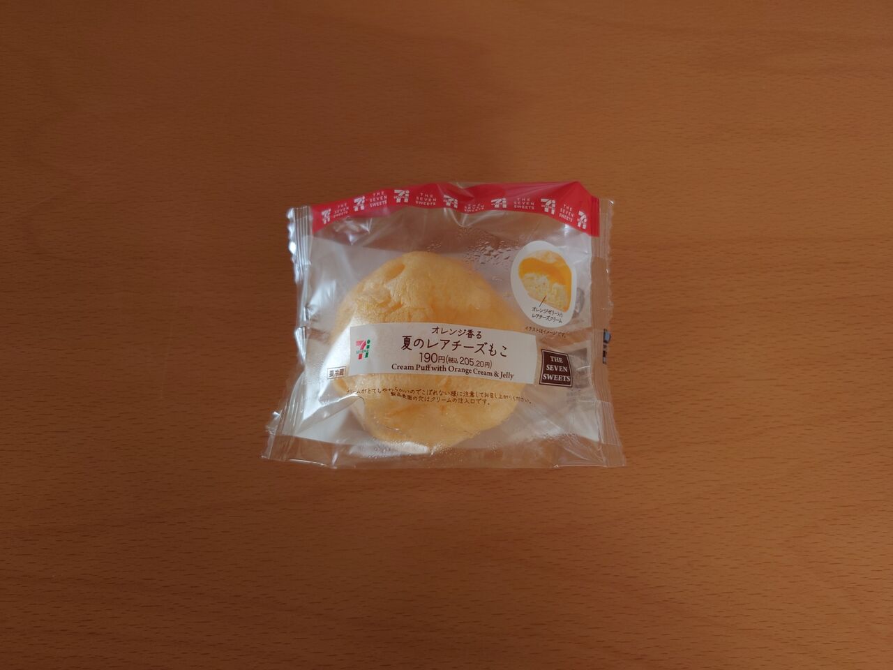 もちっとした食感のシュー生地に、細かく砕いたオレンジゼリー入りのレアチーズクリームを入れたシュークリームです。