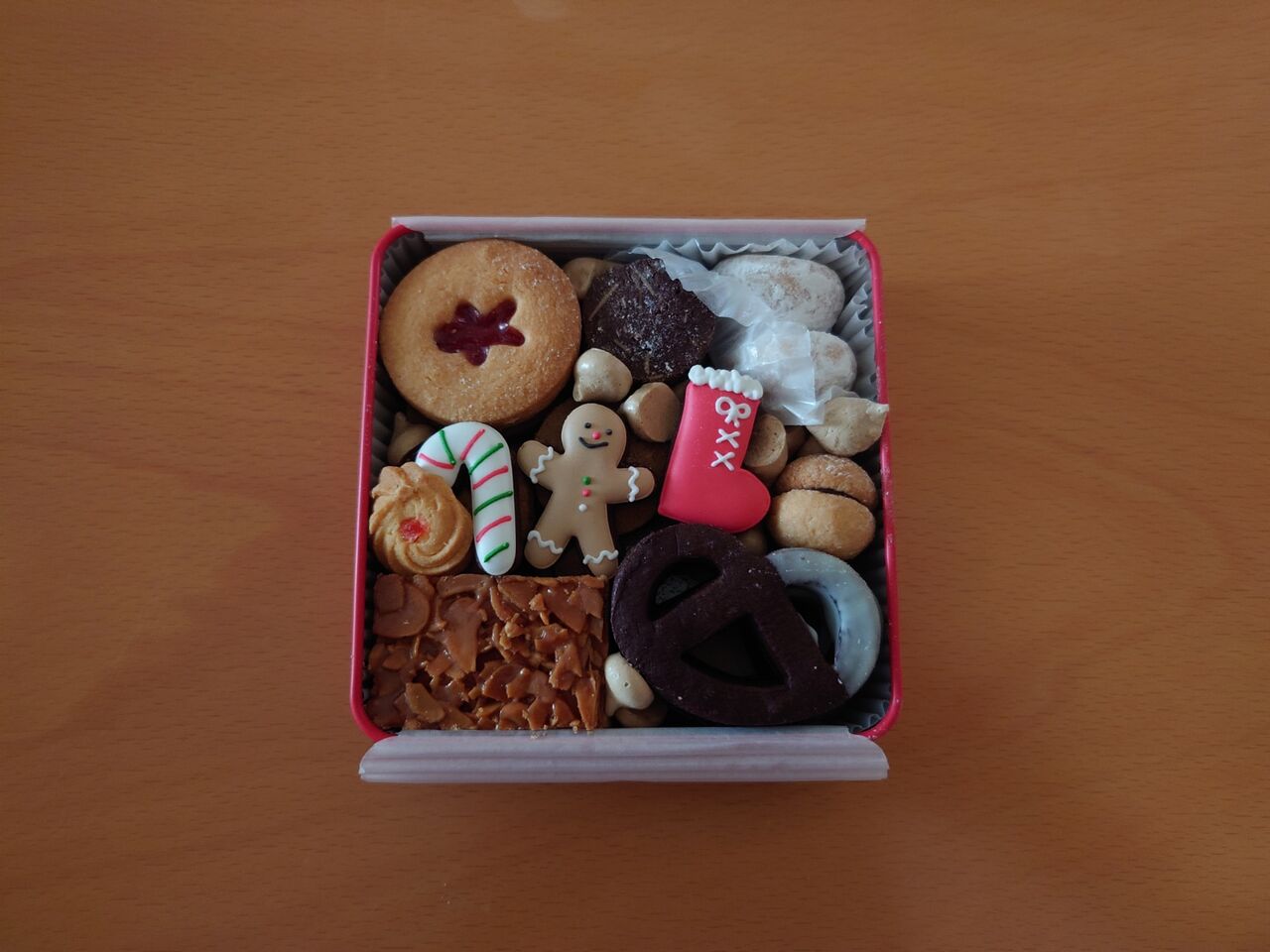 クリスマス彩る鮮やかな赤い缶につまったスペシャルクッキーの詰め合わせ。愛知県にある姉妹で営む工房『コンフィズリーエム』。材料や風味、食感にまでこだわり、一つ一つ丁寧に作られる焼き菓子が評判です。今回は、クリスマス限定のクッキー缶をご紹介します。アイシングクッキーやプレーン、チョコチップ、珈琲ヘーゼルナッツ、アールグレイ、ココアアーモンド、フロランタン、苺ジャムサンド、バーチディダーマ、スノーボール、珈琲メレンゲ、ココアプレッツェルなど、バラエティ豊かなクッキーがぎっしり詰まっています。見た目も可愛いこのクリスマス缶は、ティータイムを華やかに彩る贅沢な一品です。クッキーの詳細↓