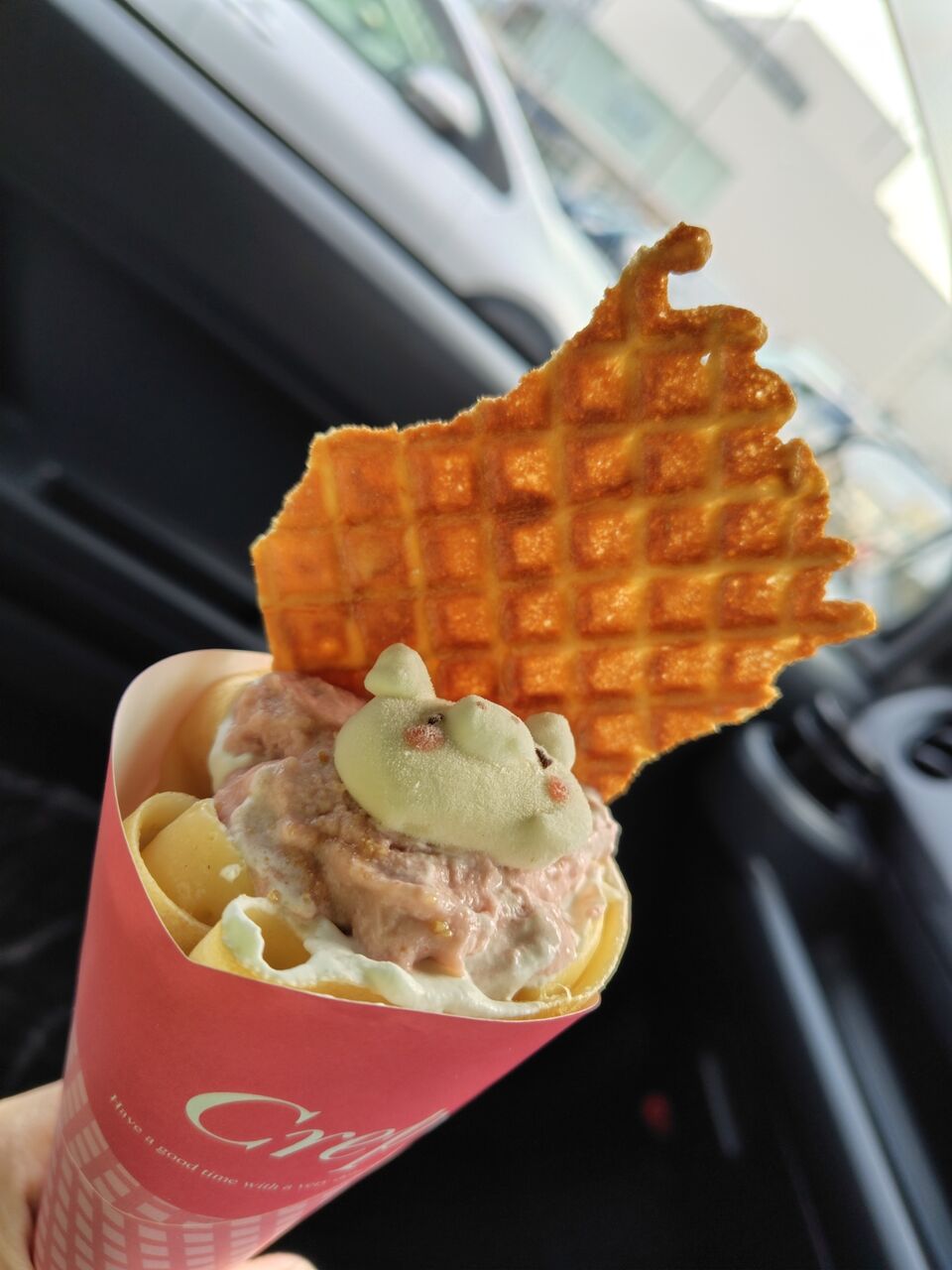 レアチーズクレープ+苺クレープのハイブリッドな感じになってて、嬉しかったぁ