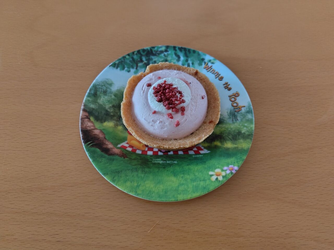 ほんのりといちごの香りがするカスタードを重ねて焼き上げたタルト生地に、いちごの果肉入りソース、いちごミルクホイップクリーム、ホイップクリームを絞りました。天面にはフリーズドライいちごをトッピングし、食感にアクセントをつけました。