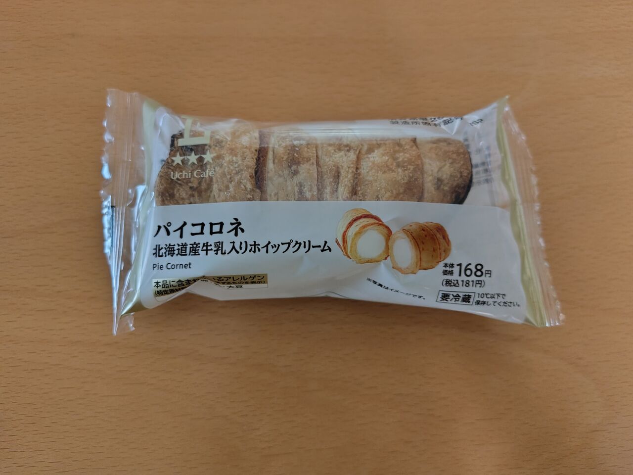 ローソン Uchi Café パイコロネ 北海道産牛乳入りホイップクリーム 2026年03月25日 今日はローソンスイーツパイコロネ↓こんな感じ↓北海道産牛乳入りのホイップクリームを入れたパイコロネ。パイは思ったほどサクッとはしてなかった固め?と言うか、けっこう厚みのあるパイ生地。 ほんのりした甘さは良い感じホイップクリームは牛乳の味が濃くて、牛乳苦手な十六夜さんは厳しかったかな牛乳入りって書いてるんだから、買うのやめておけよ!って話だけど、美味しそうに見えたんだもん(笑)ボリュームがあるので、これだけでお腹いっぱいになりました 「コンビニスイーツ」カテゴリの最新記事 タグ :#スイーツ#スイーツブログ#コンビニ#コンビニスイーツ#ローソン#ローソンスイーツ#Uchi#Café#パイコロネ北海道産牛乳入りホイップクリーム#拍手喜びます < 前の記事次の記事 > コメント コメント一覧 (2) 1. aki✻keigo 2026年03月30日 02:57 やはり、北海道産と書いた方が売れるんでしょうかね?🐈 0 izayoiyoi がしました 2. 十六夜 2026年04月03日 06:56 >>1 aki※keigoさん 北海道牛乳って言うけど、牛乳なんて道内あちこちで作られてるから一体どこのなんだ?と思いますがね😅 0 izayoiyoi がしました コメントフォーム 名前 コメント 記事の評価 リセット リセット 顔 星 情報を記憶 コメントを投稿する