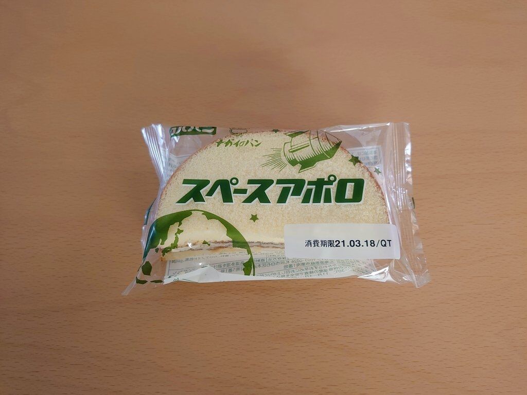 ナガイのパンで1975年頃に発売した「アポロ」を再現しました。スポンジケーキにミルク風味クリームをしぼり、ざらめをサンドしました。とのこと。